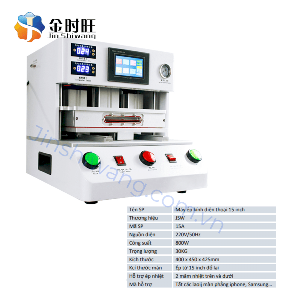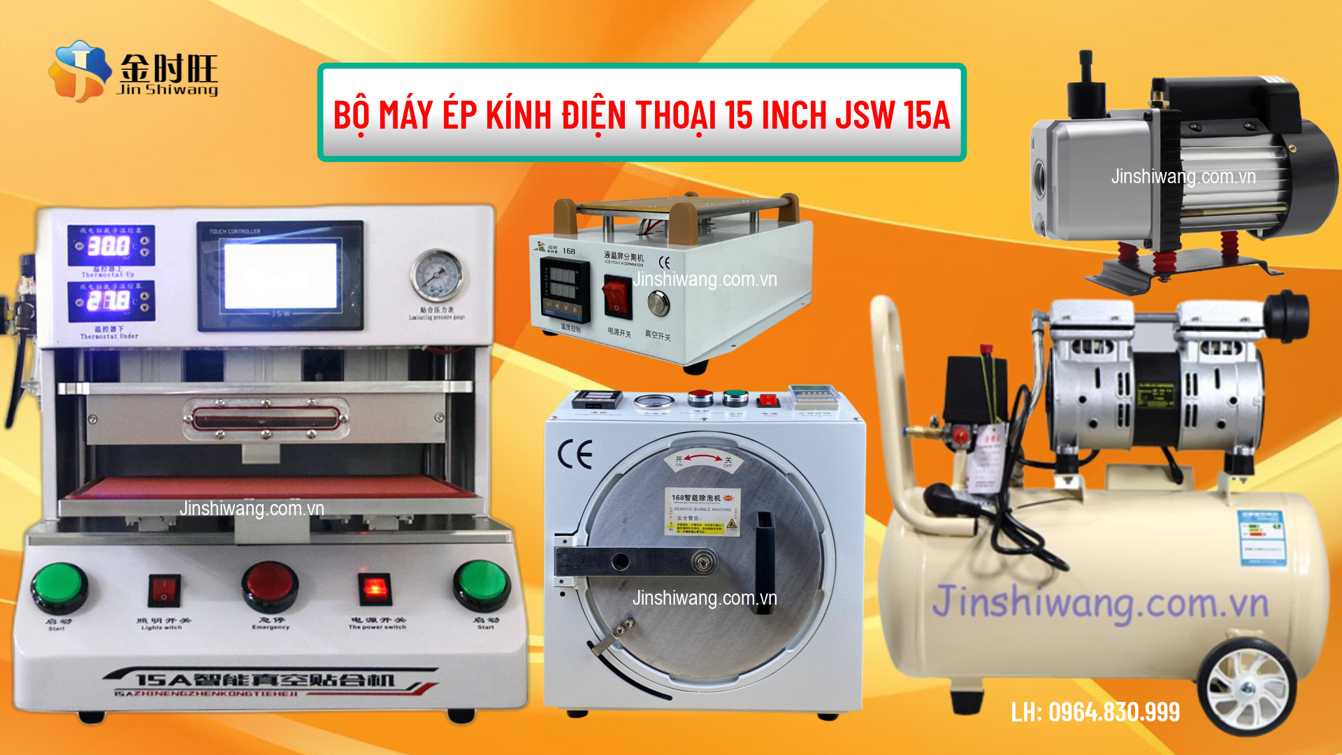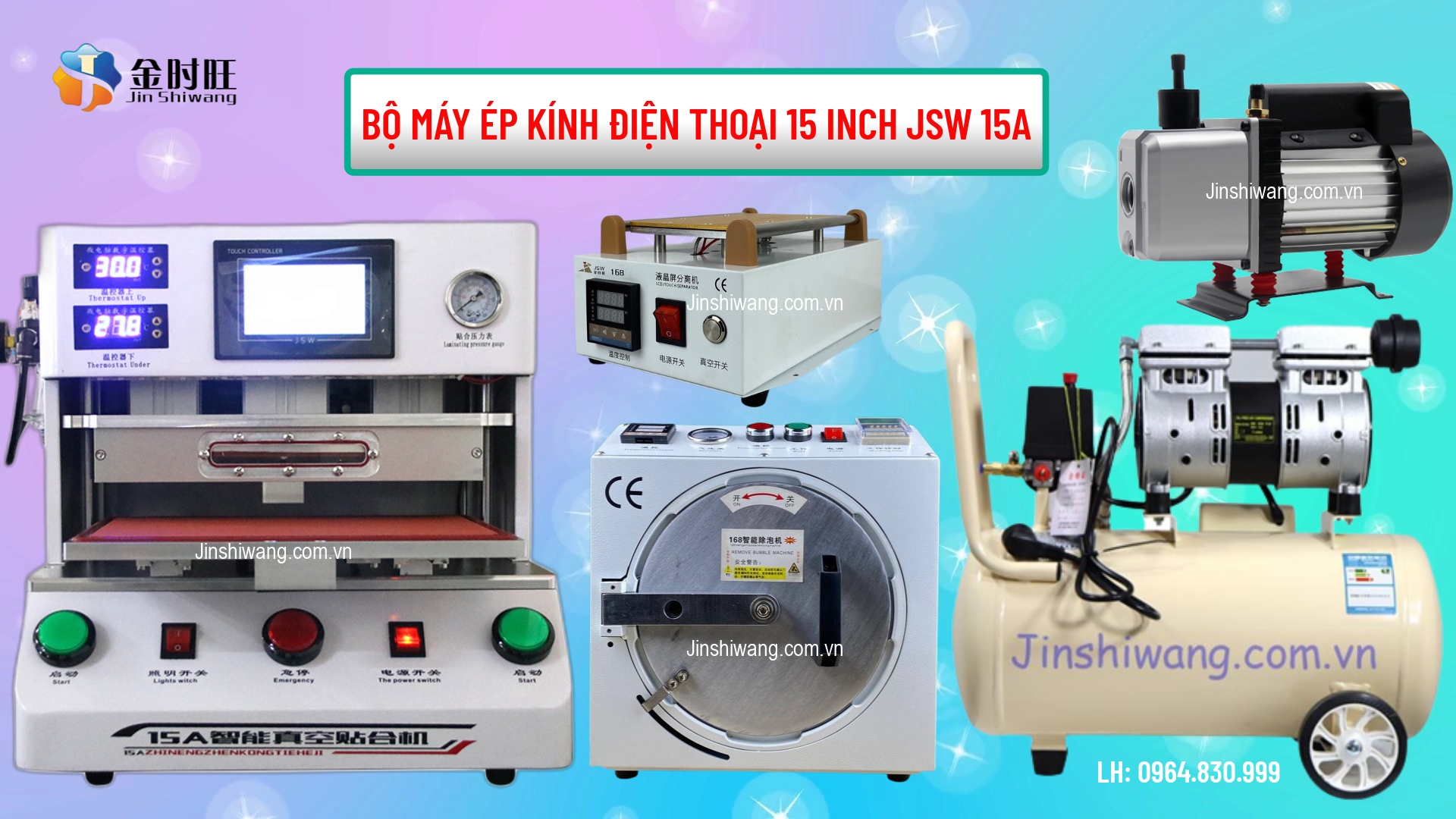 - Bộ máy ép kính màn hình điện thoại 15 inch JSW 15A được ủy quền Jin Shiwang nhập khẩu phân phối chính hãng JSW tại Việt Nam.