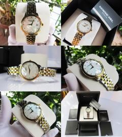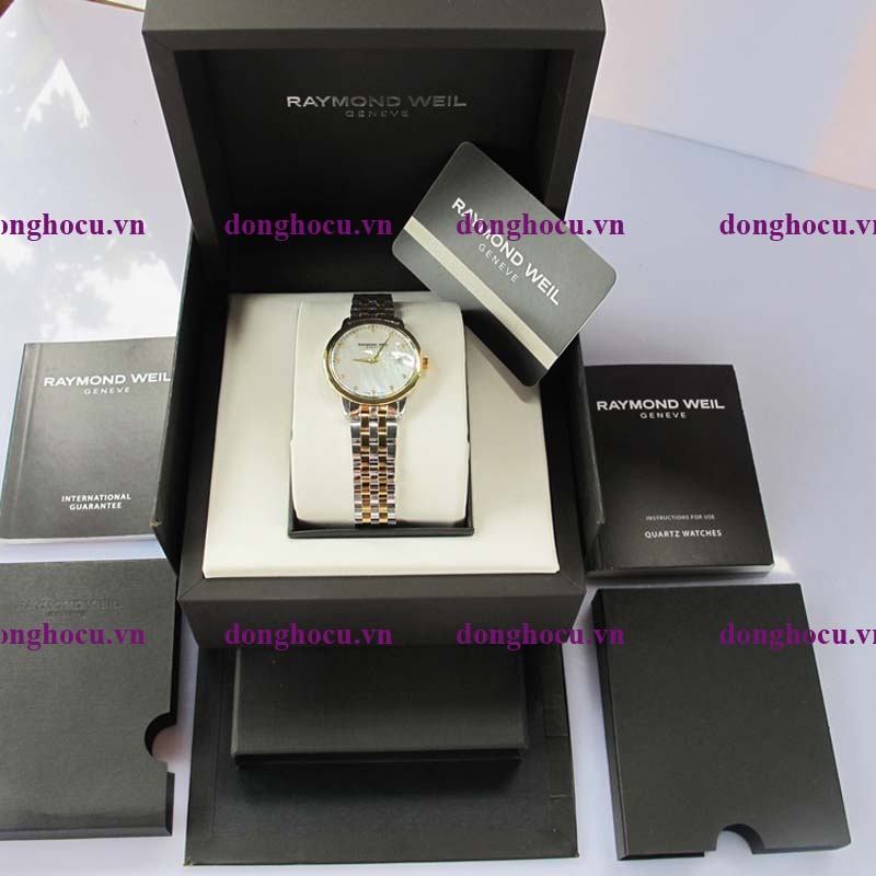 Đồng Hồ Nữ Raymond Weil Toccata Diamond - Mạ Vàng, Mặt khảm Xà Cừ, Cọc số đính Kim Cương Fullbox, hộp sổ thẻ...