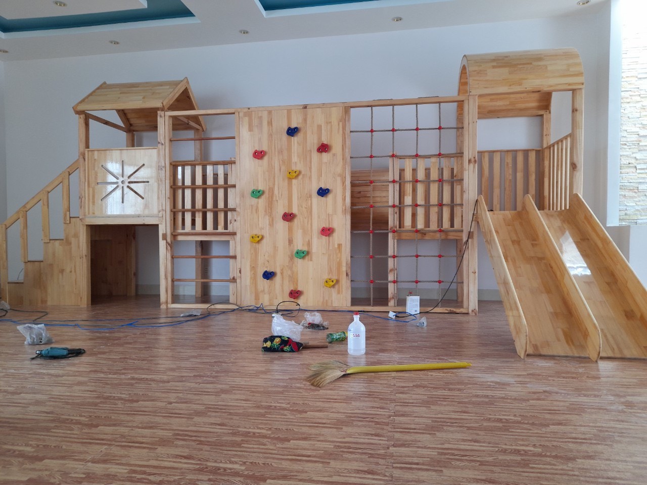 Cầu trượt liên hoàn gỗ ngoài trời cho bé, vận động liên hoàn cầu trượt gỗ ngoài trời hiện nay là sản phẩm đang được nhiều trường mầm non, khu vui chơi trong nhà cho bé chọn lựa và lắp đặt.