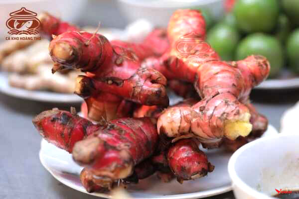 • Riềng: Dùng riềng tươi, thái lát mỏng để lót đáy nồi và ướp vào cá. Riềng giúp cá thơm và khử mùi tanh hiệu quả.