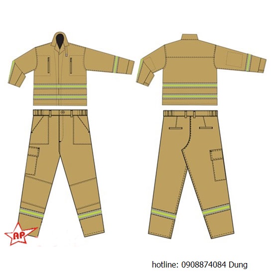 Chất liệu Polyeste/cotton 1 lớp sản xuất theo tiêu chuẩn Theo thông tư 48/2015-BCA ngày 06 tháng 10 năm 2015, bộ quần áo chữa cháy này là đồng phục của dân phòng tại các cơ sở