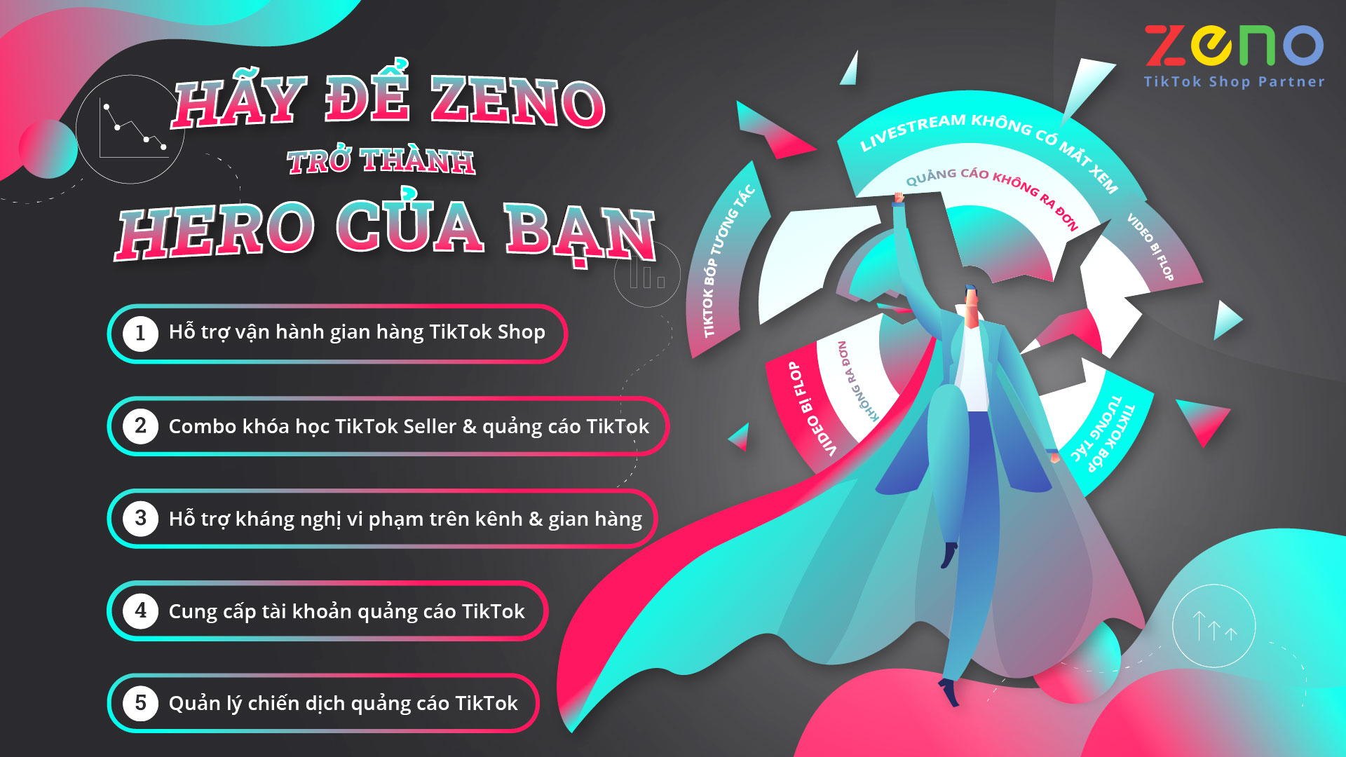 Zeno TikTok Shop Partner là một đối tác ủy quyền của TikTok tại Việt Nam. Thông qua danh mục dịch vụ, Zeno chuyên hỗ trợ doanh nghiệp khách hàng kinh doanh hiệu quả trên TikTok. Qua đó mang đến trải nghiệm kinh doanh trên TikTok thật sự an tâm, dễ dàng & tiện lợi.