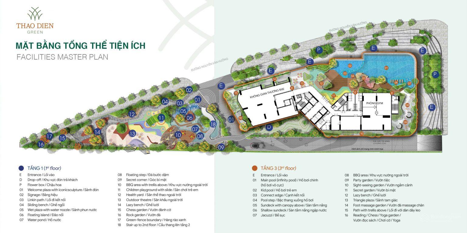 Thảo Điền Green sở hữu hệ thống tiện ích nội khu nổi bật mang xu hướng sống xanh cùng các dịch vụ xứng tầm như: