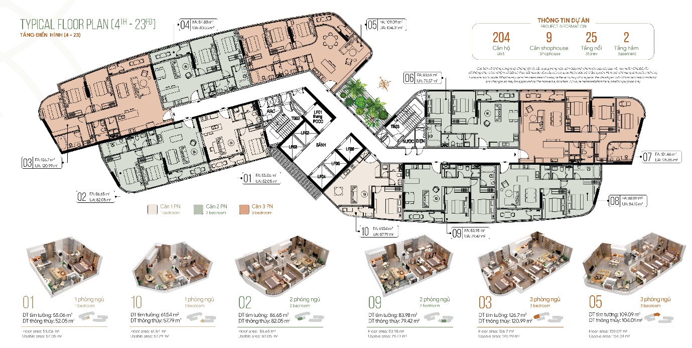 • Căn penthouse diện tích từ 322.06 m2 - 445.91m2