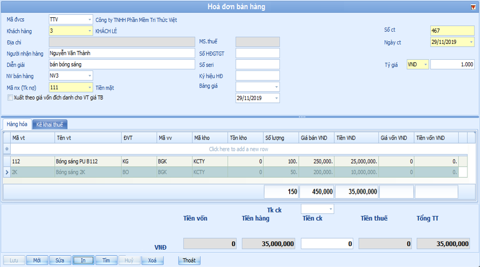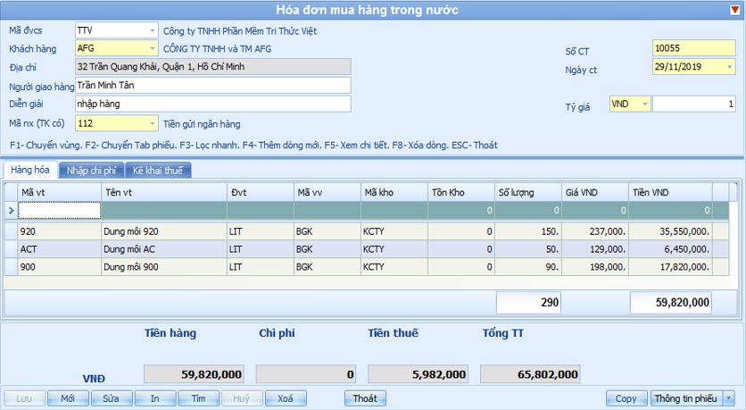 - Mua hàng chi tiết từng mặt hàng và lập phiếu nhập kho, in phiếu nhập kho hoàn toàn trên phần mềm quản lý kho;