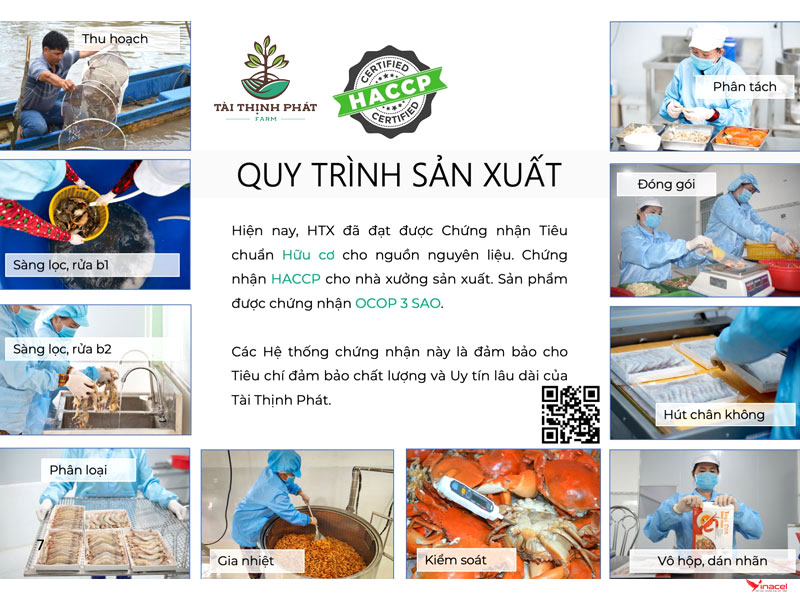 Với mong muốn đưa các sản phẩm của vùng sông nước Năm Căn (Cà Mau) như tôm, cua, cá chẽm trở thành sản phẩm chất lượng cung cấp cho đa dạng đối tượng khách hàng, HTX Tài Thịnh Phát Farm đã chú trọng đầu tư công nghệ vào chế biến sâu. Đây cũng là một trong những bước đi hiệu quả, góp phần bảo đảm môi trường trong quá trình sản xuất.
