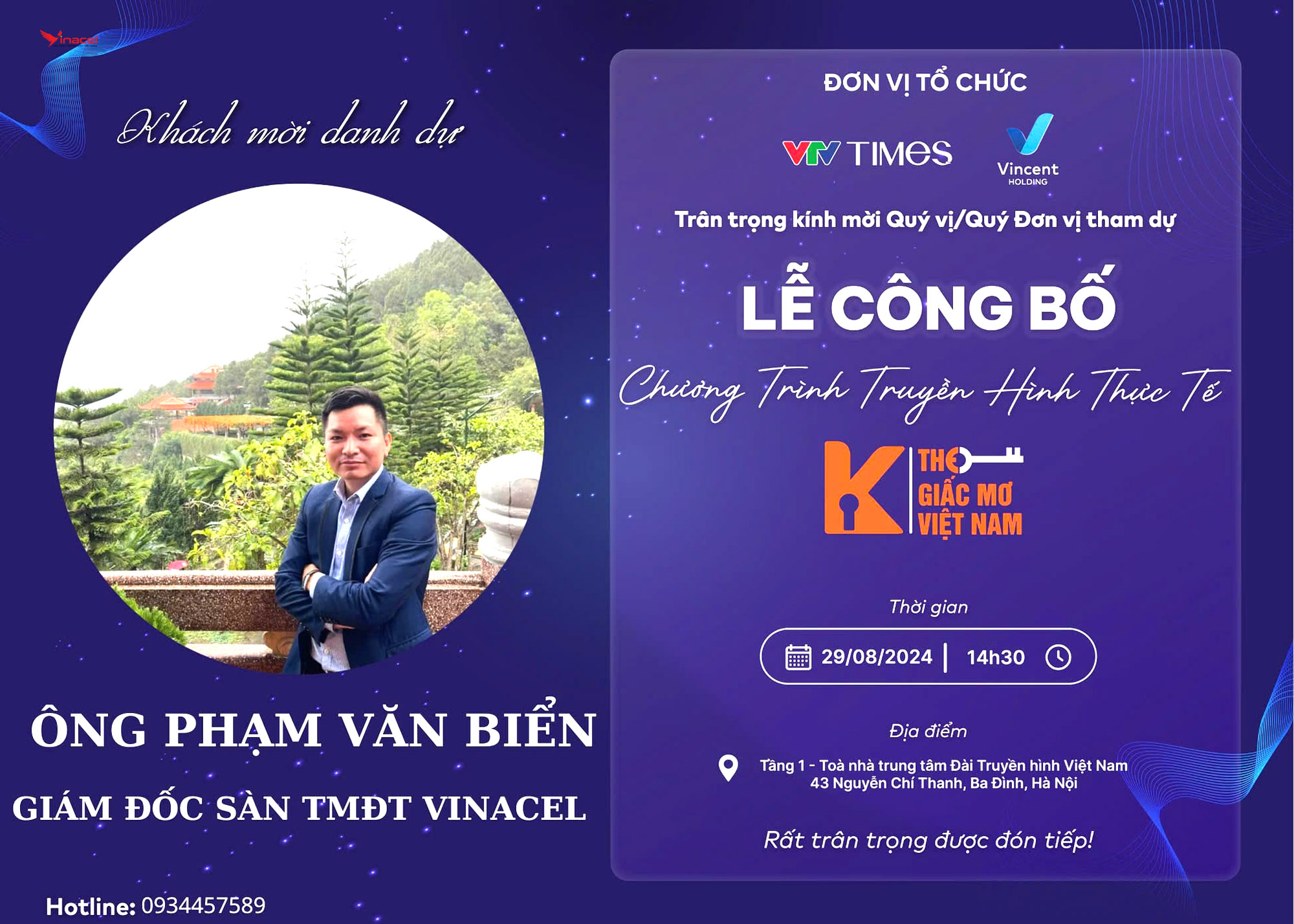 Thời báo VTV và Công ty cổ phần VINCENT Holding vừa chính thức giới thiệu Chương trình thực tế “The K - Giấc mơ Việt Nam 2024”, nhằm tìm kiếm những đại sứ bán hàng thế hệ mới, có khả năng truyền cảm hứng và đổi mới sáng tạo trong lĩnh vực thương mại điện tử.