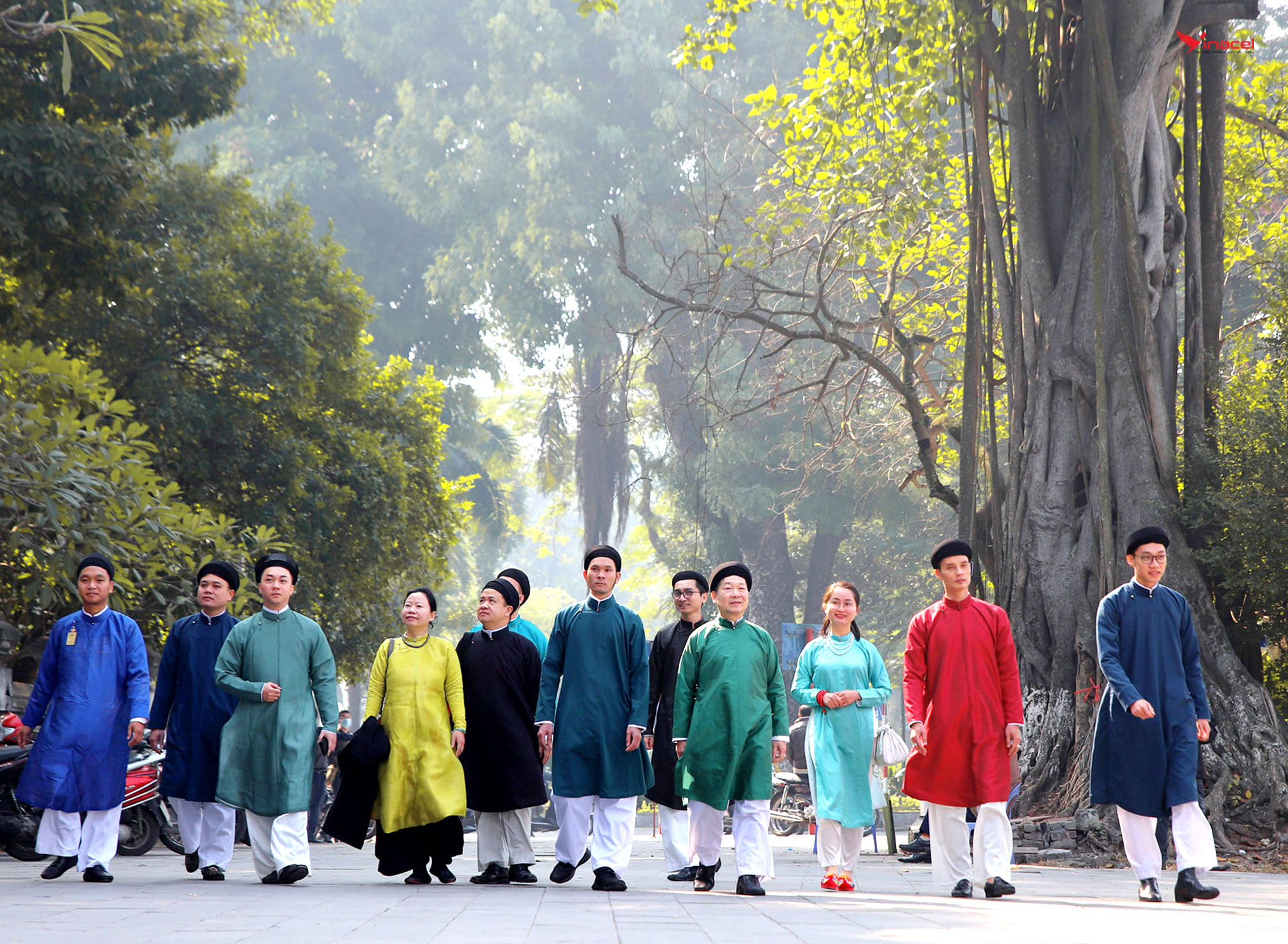 - Thứ hai: Ở phương diện đối ngoại, nước Việt Nam chúng ta cũng có sắc phục riêng, có nền văn hóa trang phục riêng. Thế hệ hôm nay và mai sau phải có trách nhiệm lan tỏa, phổ biến sâu rộng bộ trang phục áo ngũ thân này đến với cộng đồng trong và ngoài nước.