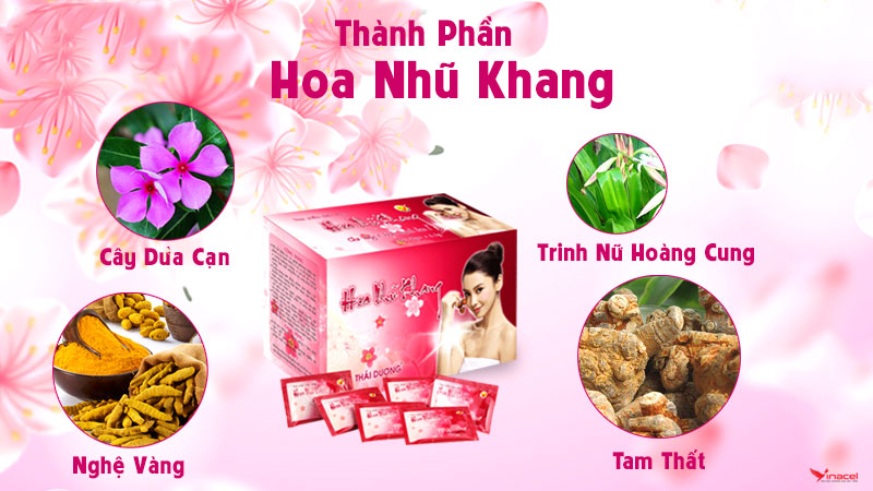 Thành phần của sản phẩm này bao gồm các loại thảo dược quý hiếm, có nguồn gốc tự nhiên, an toàn cho người sử dụng. Hoa Nhũ Khang được ví như “Thần dược sinh lý” lành tính dành cho phái đẹp, nhờ chiết xuất từ 100% cây thuốc quý có trong tự nhiên – Nhóm thảo dược vốn đã mang tác dụng tích cực với sức khỏe nữ giới, về khả năng ức chế sự phát triển của các khối u, cân bằng nội tiết, dưỡng nhan, nở ngực, nhuận sắc…