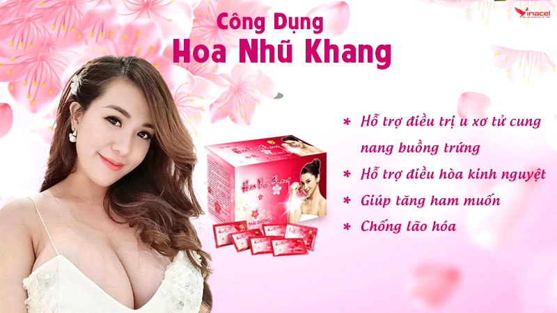 Ngoài ra Hoa nhũ khang còn giúp tăng cường sức khỏe rõ rệt cho phụ nữ, chống khô hạn, cải thiện tốt chức năng sinh lý, giúp vòng 1 săn chắc, giảm triệu chứng hoa mắt chóng mặt, nhắc đầu, mất ngủ, giúp da hồng hào, tóc mềm hơn.