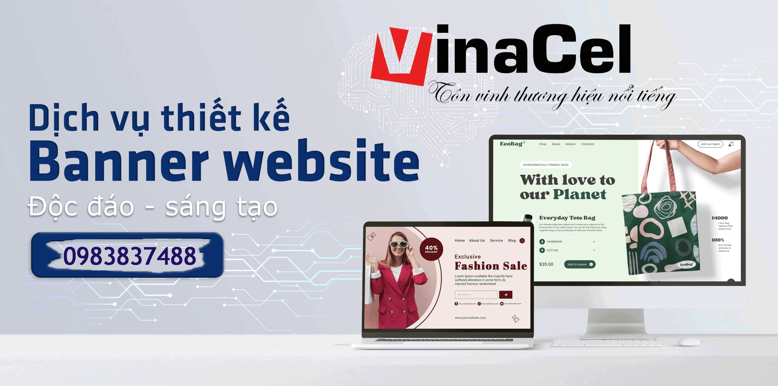Bạn đang muốn cải thiện hình ảnh, giao diện của website doanh nghiệp? Bạn đang tìm kiếm một đơn vị cung cấp dịch vụ thiết kế banner chuyên nghiệp? Vinacel chính là một lựa chọn phù hợp nhất dành cho bạn. Hãy liên hệ ngay số HOTLINE 0983837488 để chúng tôi tư vấn thiết kế banner đẹp và thu hút nhất cho bạn!